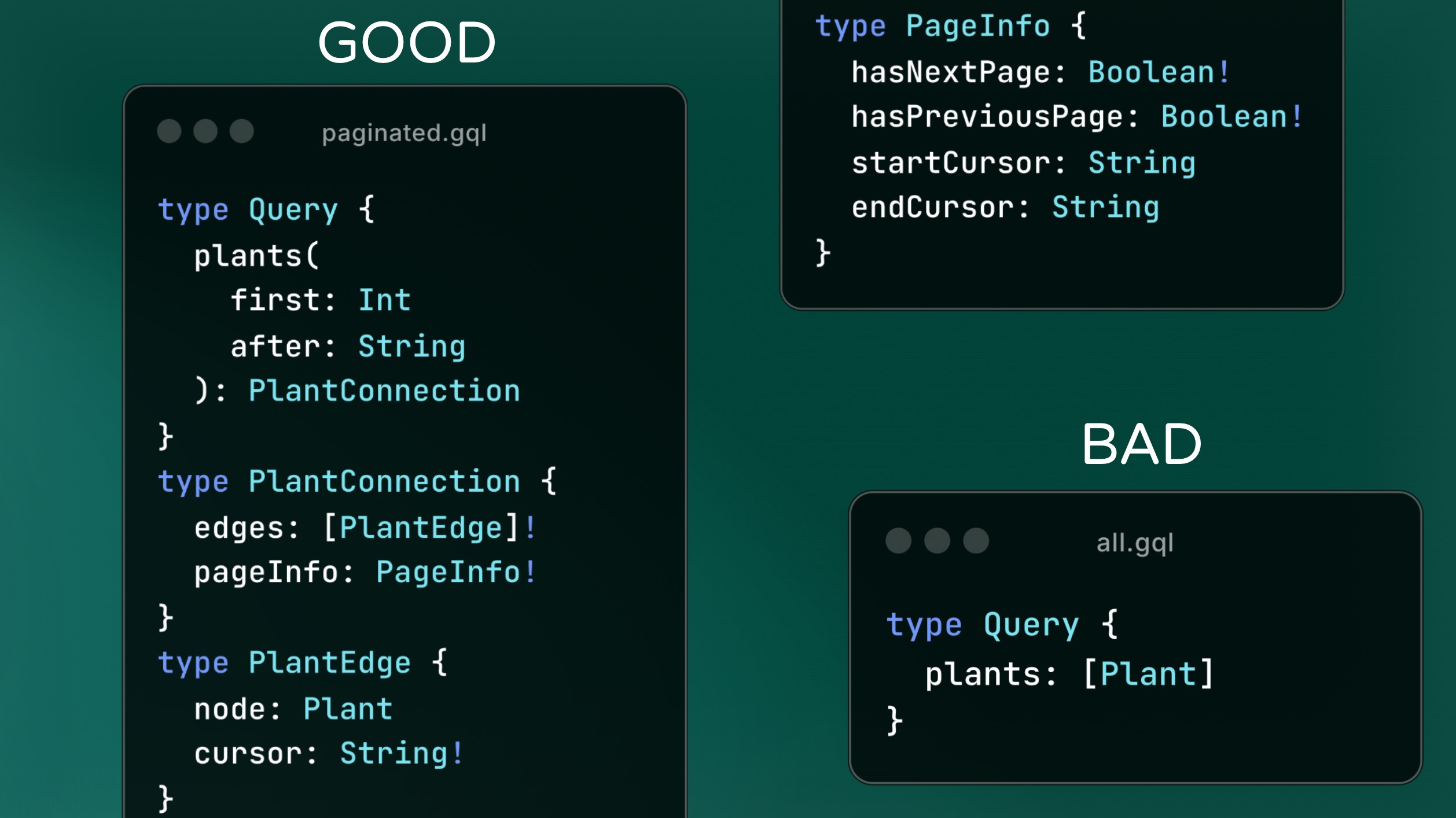 Also don’t place Binary Files or other large response fields in the Schema. Leverage CDNs and other purpose built solutions meant for dealing with these files.